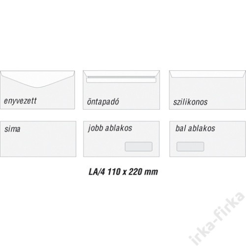 Fehér, bélésnyomott, ablakos boríték, szilikonos záródással.