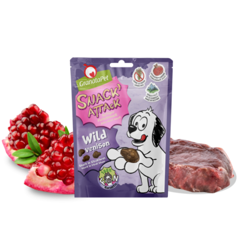 A GranataPet Dog - Snack' Attack venison egy egészséges, gabonamentes vadhúsos jutalomfalat, amely tökéletes a kutyák számára.
