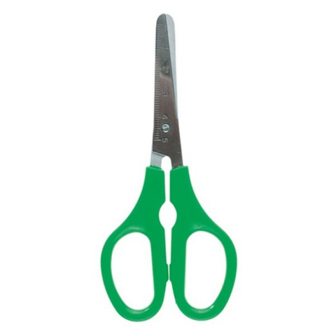 Ideális óvodások és alsó tagozatos gyerekek számára. Rozsdamentes acélból készült penge, 13 cm-es, kerekített hegy vonalzó beosztással.
