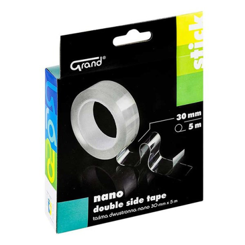 Ragasztószalag kétoldalas GRAND 30mm x 5m NANO NANO kétoldalas Ragasztószalag. A NANO ragasztószalag egyedi ökológiai anyagból, NANO PU gélből készült. Mérete: 30mm x 5m