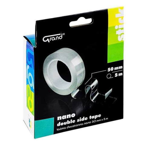 Ragasztószalag kétoldalas GRAND 50mm x 5m NANO NANO kétoldalas Ragasztószalag. A NANO ragasztószalag egyedi ökológiai anyagból, NANO PU gélből készült. Mérete: 50mm x 5m