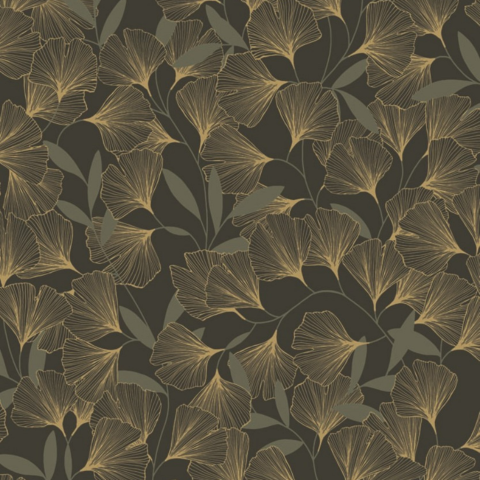 1 kép Grandeco HABOSÍTOTT FELÜLETŰ VLIES TAPÉTA A64402, GINKO MINTÁS, FEKETE-ARANY