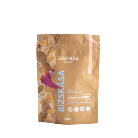 Grandia rizskása növényi fehérjével sós mogyorós 350 g Összetevők: Natúr rizsdara, datolyapor, rizsfehérje, borsófehérje, glicin, arany lenmag, inulin, útifűmaghéj, mogyoróvajpor, aprított földimogyoró, bio maca por, só A Glow&Go Sós Mogyorós Rizskása