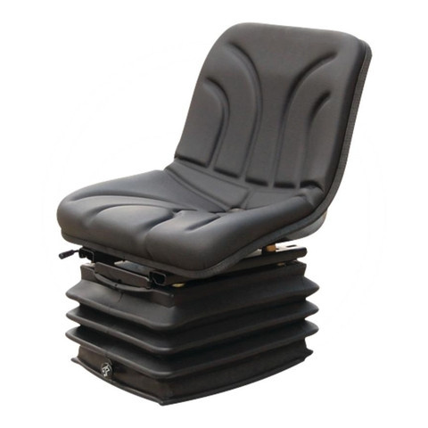 Rugós 12 voltos kompresszorral Rugós ülés rugózásszabályozással 50–130 kg tömeghez Rugózási hossz 100 mm, rugózás hidraulikus lengéscsillapítóval Hosszirányú beállítás vezetősínekkel, beállítási tartomány 250 mm Ülésmagasság-állítás 60 mm Belső poliuretán