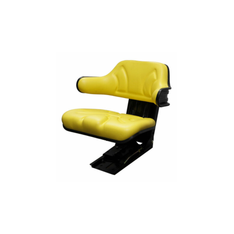 Rugós ülés rugózásszabályozással 50–120 kg tömeghez Rugózási hossz 80 mm, rugózás kettős működésű lengéscsillapítóval Hosszirányú beállítás sínekkel: beállítási tartomány 150 mm Kerek háttámla integrált kartámaszokkal John Deere ülés sárga műbőr huzattal