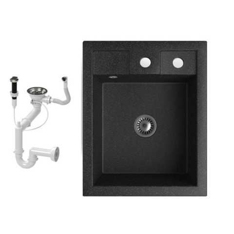 1 kép Granitec Gránit mosogató NERO Parma + szifon dugókiemelővel (fekete)