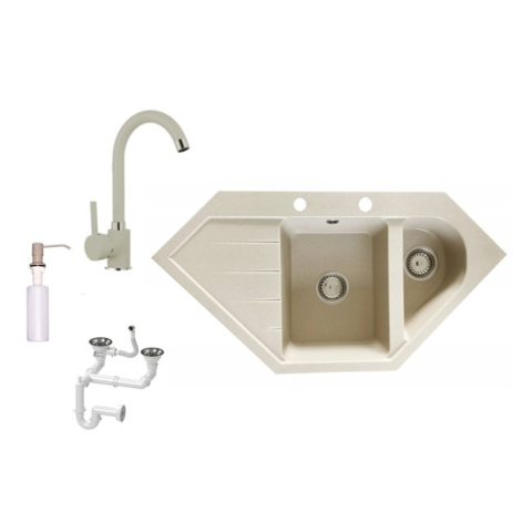 1 kép    Granitec Joker 96-49B Gránit mosogató + Csap + Adagoló (bézs)