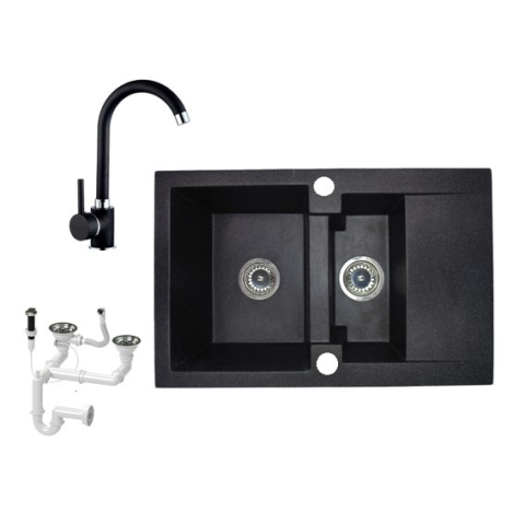 1 kép    Granitec NERO D737-47C Gránit Mosogató + Csap + Dugóemelő (fekete - nem szemcsés)