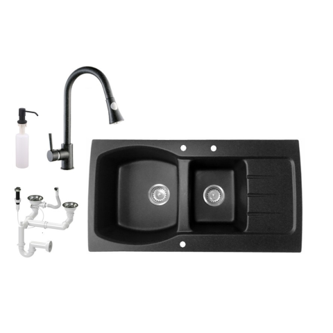 1 kép    Granitec Nero Master Gránit Mosogató + Zuhanyfejes Csaptelep + Dugóemelő + Adagoló