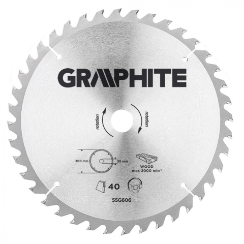 A GRAPHITE vídiabetétes fűrésztárcsa (kat. sz. 55H606) átmérővel 300 mm, a hőmérsékletnek és a deformálódásnak igen ellenálló MN65-ös mangán acélötvözetből készül. Az YG6A vídiabetétes fogazás lehetővé teszi a fa és faalapú anyagok, mint pl. a rétegelt le