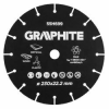 0 Vágótárcsa GRAPHITE (cikkszám: 55H699) külső átmérő 230 mm és belső 22.2 mm. A korong széleit volfrám-karbid borítja, ennek köszönhetően nagyon jól vágja puha anyagokat, többek között: fa, fatáblák, forgácslapok, tégla, műanyag, gipszkarton. Sarokcsi