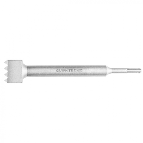 SDS Plus GRAPHITE Stokkolófej (ref. 57H573), 40 x 40 mm széles, 16 foggal ellátott munkahegy, amely a megmunkálandó anyagot kavicsos szerkezetűvé, durvábbá teszi a habarccsal, ragasztóval vagy gyantával való jobb kötődés érdekében.