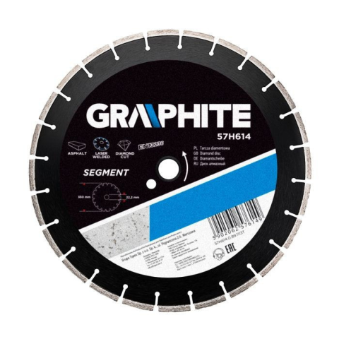 A GRAPHITE szegmentált gyémánttárcsa lézerhegesztett szegmenseinek köszönhetően ideális nehéz építőipari munkákhoz. Az igen erős gyémánt szegmensek lehetővé teszik a betonból, vasbetonból, gránitból, márványból, kőből, téglából készült elemek effektív vág