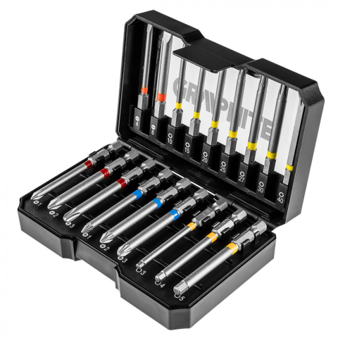 GRAPHITE speciálisan hosszabbított bit készlet , ideális a nehezen hozzáférhető helyeken vágzett szerelési munkákhoz – bútorok összeszereléséhez