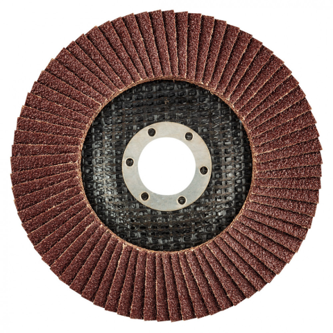 GRAPHITE lamellás csiszolókorong (cikkszám: 55H989) 125 mm átmérő, K80 szemcsefinomság, fém- és fafelületek hatékony csiszolására alkalmas sarokcsiszolóval. A csiszolószövet-szárnyak radiális elrendezése lehetővé teszi a nagy hatékonyság elérését, amely s