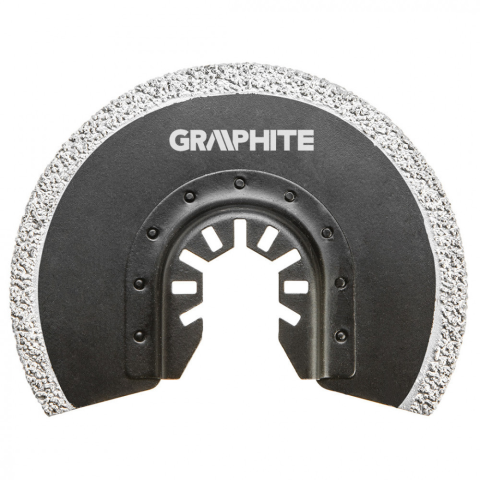 Fűrésztárcsa többfunkciós géphez, HM félkör - wolfram-karbid szemcsebevonat, kerámiák vágásához, átmérő 85 mm A GRAPHITE szegmens fűrészlap (cikkszám: 56H004) átmérővel 85 mm kerámiákhoz volfrám-karbid szemcsékkel szórt élű. Lehetővé teszi a csempék precí