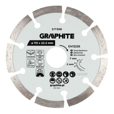 1 kép Graphite Gyémánt vágókorong 115x22.2mm, szegmenses, száraz és vizes