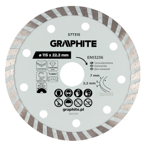 1 kép Graphite Gyémánt vágókorong 115x22.2mm, turbo, száraz