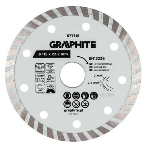 1 kép Graphite Gyémánt vágókorong 115x22.2mm, turbo, száraz és vizes