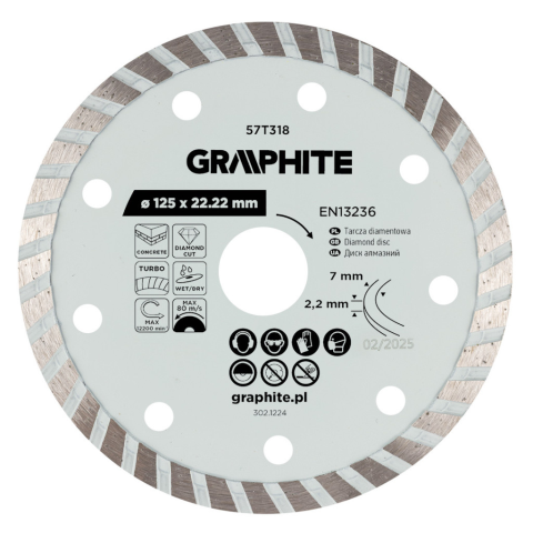 1 kép Graphite Gyémánt vágókorong 125x22.2mm, turbo, száraz és vizes