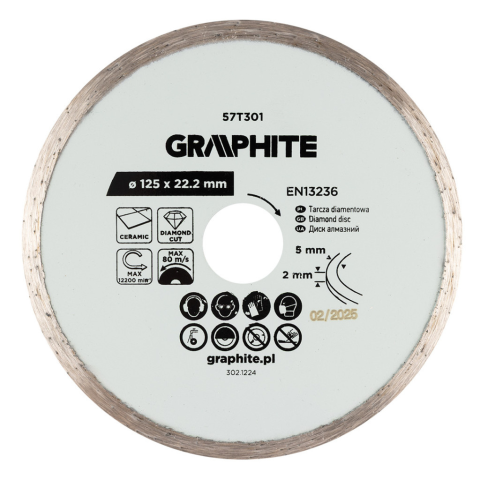 Graphite Gyémánt vágókorong 125x22.2mm, vizes barkácsgép tartozék árgrafikon