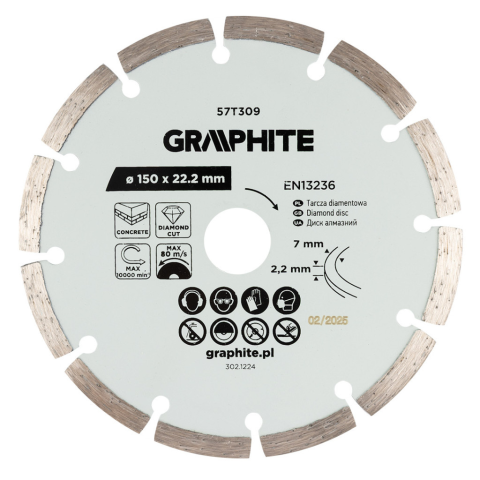1 kép Graphite Gyémánt vágókorong 150x22.2mm, szegmenses, száraz