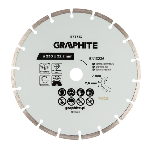 1 kép Graphite Gyémánt vágókorong 230x22.2mm, szegmenses, száraz