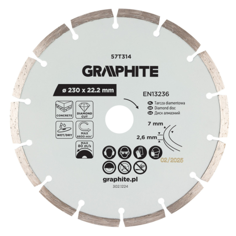 Graphite Gyémánt vágókorong 230x22.2mm, szegmenses, száraz és vizes