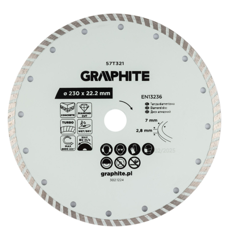 Graphite Gyémánt vágókorong 230x22.2mm, turbo, száraz és vizes