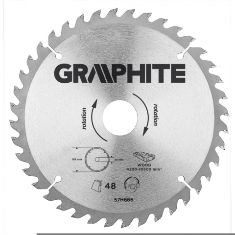 A Graphite vídiabetétes fűrésztárcsa a hőmérsékletnek és a deformálódásnak igen ellenálló MN65-ös mangán acélötvözetből készül. Az YG6A vídiabetétes fogazás lehetővé teszi a fa és faalapú anyagok, mint pl. a rétegelt lemez, a forgácslap vagy az MDF lapok