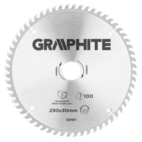 1 kép Graphite Körfűrészlap ALU-hoz, keményfém fogakkal, 250x30mm, 100 fog (55H611)