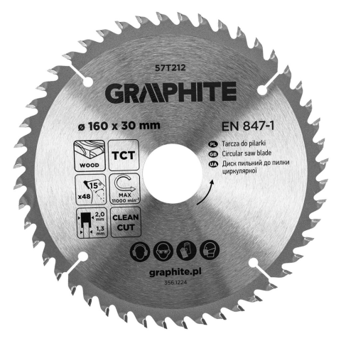 1 kép Graphite Körfűrészlap keményfém fogakkal, 160x30mm, 48fog