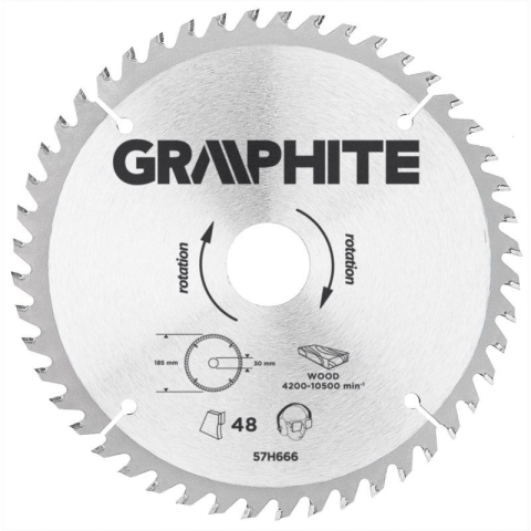 1 kép Graphite Körfűrészlap keményfém fogakkal, 185x30mm , 48 fog