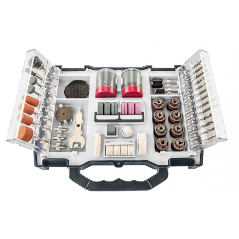 Tartozékkészlet mini multifunkciós géphez GRAPHITE (cikkszám:. 55H084), a készlet 99 részes: fúrók, vágó- és csiszolókorongok, marók, kövek, kefék és szalagok... Alkalmasak a legtöbb anyag élesítésére, simítására, sorjázására és általános csiszolására. Al