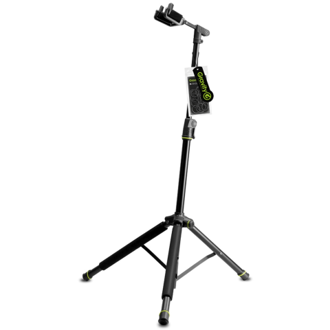 A GS 01 NHB egy stabil és elegáns gitárállvány akusztikus, elektromos és basszusgitárokhoz. Magassága 108 cm-ig állítható és felhajtható. Az okos „nyakölelés” mechanizmus automatikusan rögzíti a gitárt a nyakvillában, hogy ne csússzon el, és automatikusan kinyílik, amikor a hangszert felemeli az állványról. A puha párnázás megvédi a gitárt a karcolásoktól és nem károsítja a festéket.