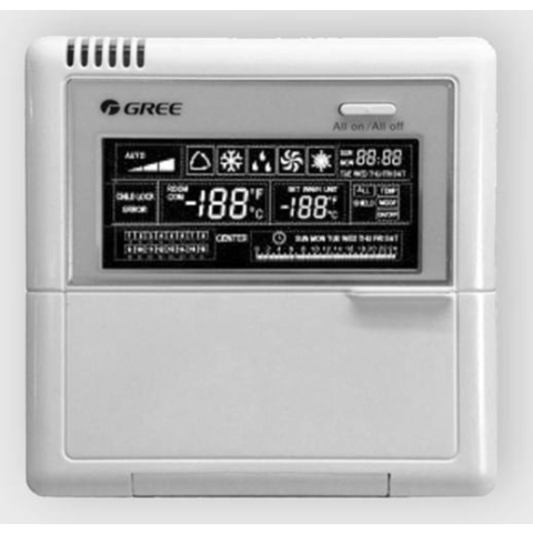 Gree CE50-24/E Központi vezérlő Professzionális központi vezérlő akár 16 Gree beltéri egység egyidejű irányítására. Kompatibilis Pulse, Amber, G-Tech, Konzol, Comfort X és U-Match modellekkel. Átlátható LCD kijelzővel, ideális lakások, irodák és keresked
