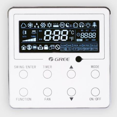 Gree XK117 fali vezetékes távirányító A Gree XK117 professzionális fali vezetékes távirányító U-Match multisplit rendszerekhez. Megbízható kábelezett kapcsolat, jól olvasható kijelző és ergonomikus fali kivitel jellemzi. Professzionális vezetékes vez