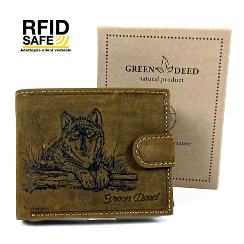 1 kép GREEN DEED farkas nyomatos, RFID védett nyelves bőr pénztárca UFA08T