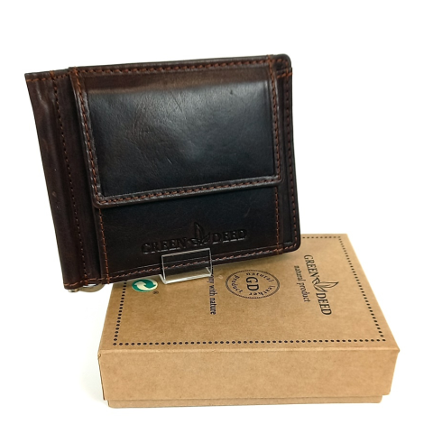 1 kép GREEN DEED nyomott logós, barna, amerikai marhabőr, csapópántos dollár pénztárca OPR-D