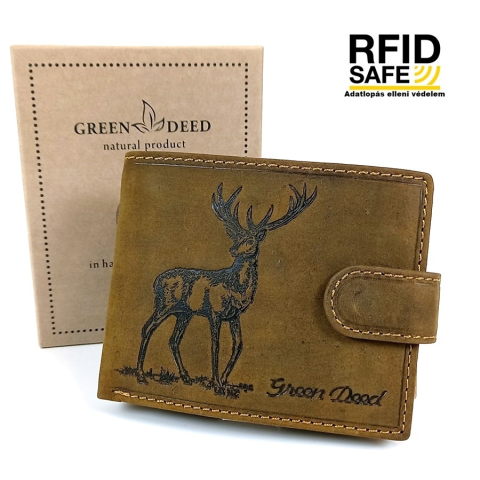 1 kép GREEN DEED szarvas nyomatos, RFID védett nyelves bőr pénztárca AGA6002LT