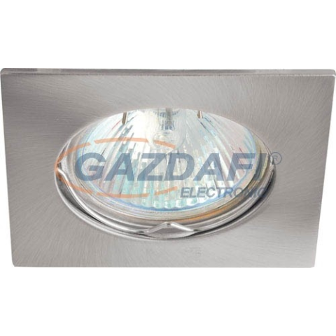 Mennyezetbe építhető spot, merev, négyzet alakú,szatén nikkel színben, MR16 50W (kód GXZH017) halogén izzókhoz, vagy LED 60 SMD MR16 4W-WW (kód GXLZ029). Az izzó nem tartozék. MR-16/12V izzókhoz GU5,3 foglalat használatos, amely tartozék. Az izzó ruGREEN