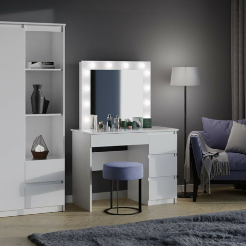 1 kép Greensite Drohmo Marina fésülködő asztal (3 jobb alsó fiókokkal), 98x76x51 cm, fehér