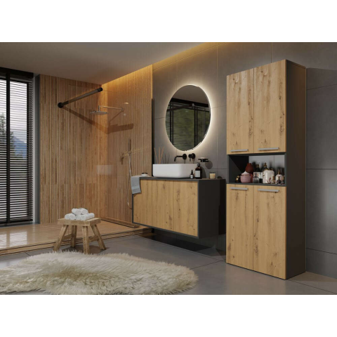 1 kép Greensite Riano MIX 1K DK fürdőszoba szekrény, 60x174x30 cm, antracit-tölgy