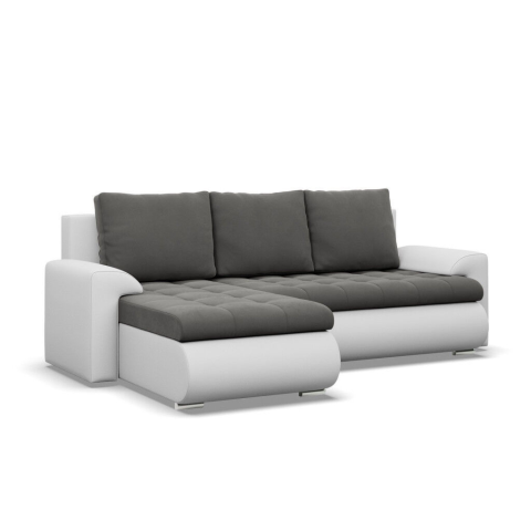 1 kép Greensite Tokio sarokkanapé, 2 ágyneműtartóval, bársony + műbőr, baloldali, szürke - fehér