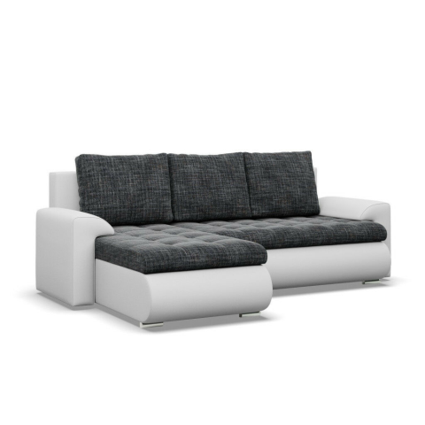 1 kép Greensite Tokio sarokkanapé, 2 ágyneműtartóval, fonott + műbőr, baloldali, sötétszürke - fehér