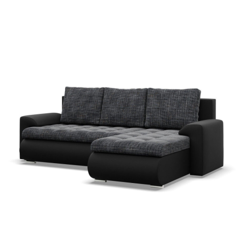 1 kép Greensite Tokio sarokkanapé, 2 ágyneműtartóval, fonott + műbőr, jobboldali, szürke - fekete