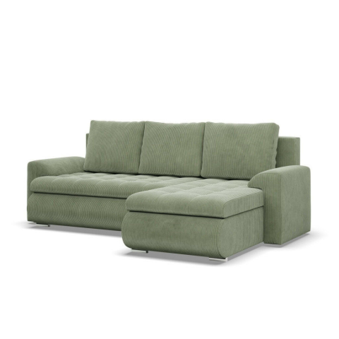 1 kép Greensite Tokio sarokkanapé, 2 ágyneműtartóval, kordbársony, jobboldali, zöld