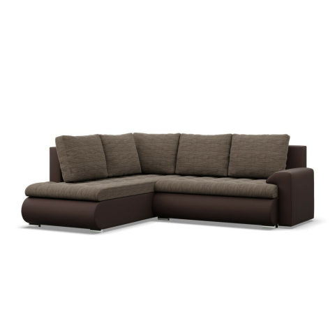 1 kép Greensite Tokio sarokkanapé, L alakú háttámlával, 2 ágyneműtartóval, fonott + műbőr, baloldali, barna