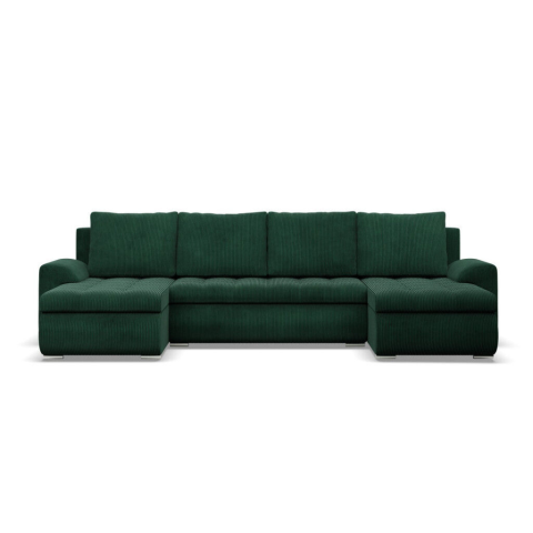 1 kép Greensite Tokio U alakú sarokkanapé, 3 ágyneműtartóval, kordbársony, univerzális oldal, zöld
