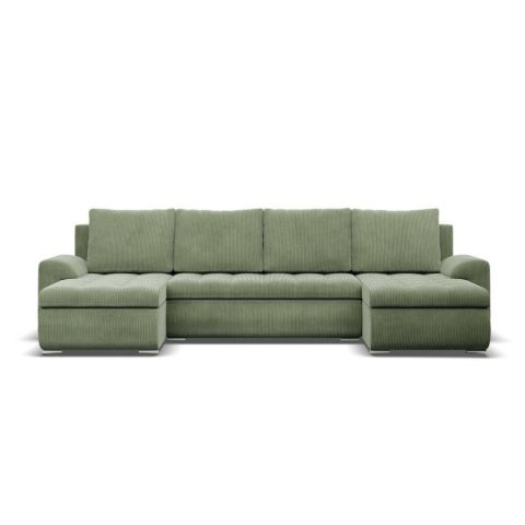 Greensite Tokio U alakú sarokkanapé, 3 ágyneműtartóval, kordbársony, univerzális oldal, zöld